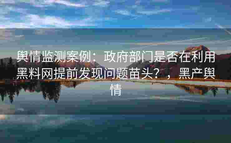 舆情监测案例:政府部门是否在利用黑料网提前发现问题苗头?,黑产舆情