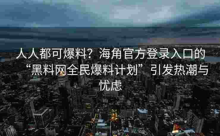 近年来,随着社交媒体和互联网的发展,信息的传播变得越来越快速与便捷。无论是大到政府政策的变化,还是小到身边的一点琐事,几乎都能在几秒钟之内传播开来。在这个信息时代,如何更高效、更快... 近年来,随着社交媒体和互联网的发展,信息的传播变得越来越快速与便捷。无论是大到政府政策的变化,还是小到身边的一点琐事,几乎都能在几秒钟之内传播开来。在这个信息时代,如何更高效、更快速地传递真相,成为了无数平台所追求的目标。而海角官方登录入口的“黑料网全民爆料计划”正是这样一项创新项目,它的出现让许多人看到了透明与公正的希望,但也引发了广泛的讨论与忧虑。
